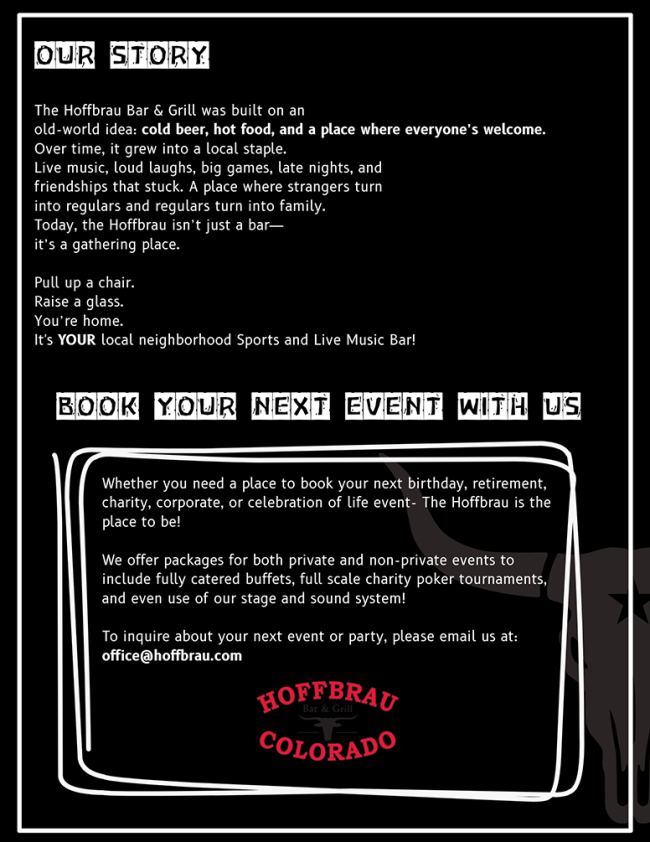 your neighborhood pub and a whole lot more! hoffbrau.com